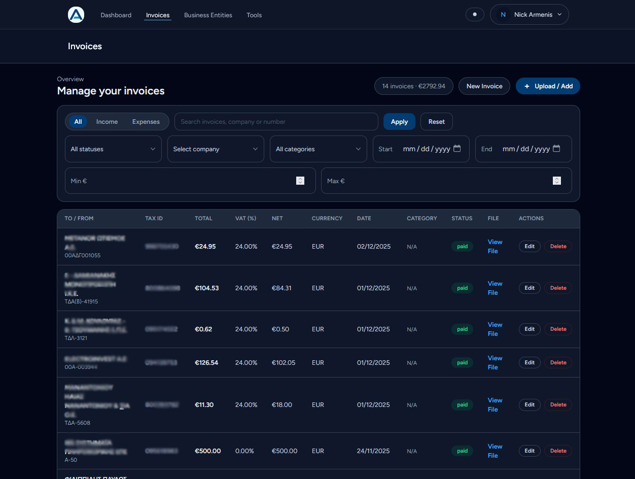 – Demo Coming Soon: https://invoices.armenisnick.gr